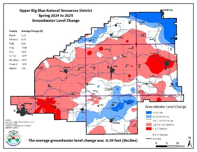 Gráfica del nivel de acuífero de Upper Big Blue NRD