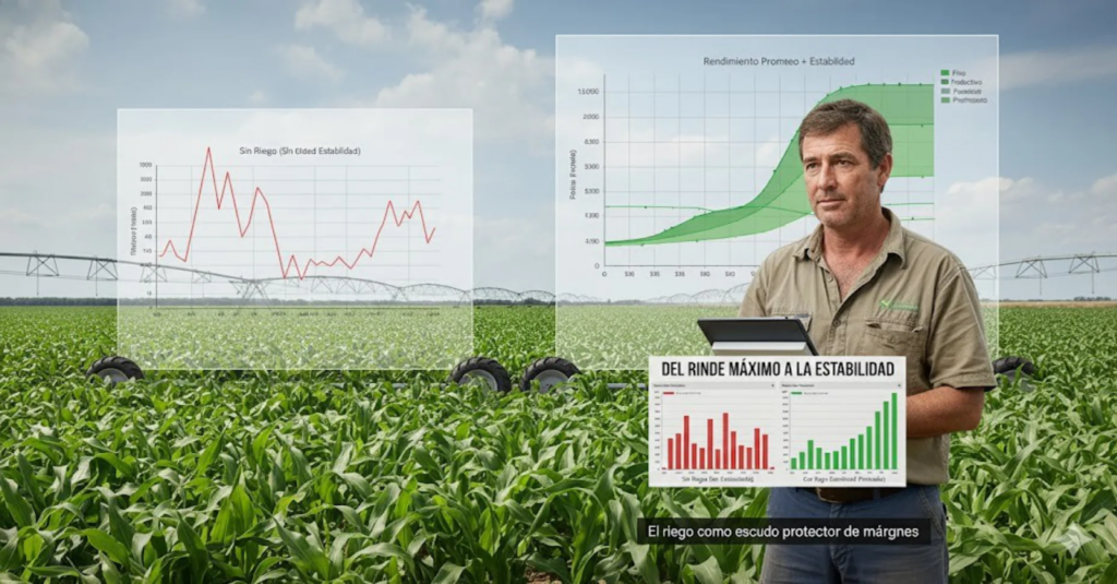 Esta lógica responde a una realidad concreta: en un contexto de costos crecientes y mercados volátiles, la estabilidad vale tanto como el rinde promedio. El riego aparece entonces como una herramienta para sostener pisos productivos altos, atravesar años difíciles y proteger márgenes.