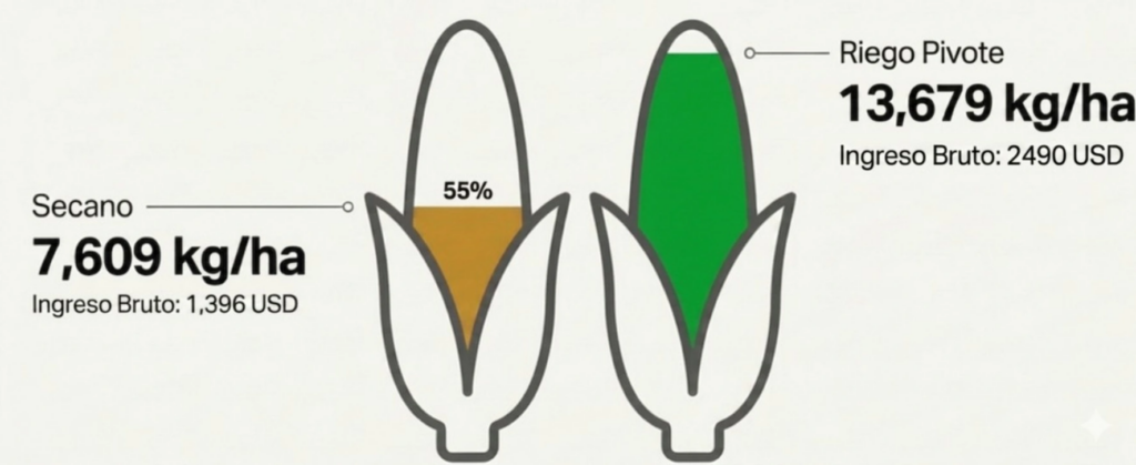 Es decir, el riego no debe analizarse como un costo aislado, sino como el factor que habilita una mejora concreta en el resultado económico.